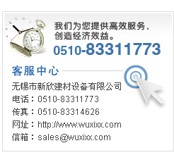 © 2010 无锡市新欣建材设备有限公司 - 厂址:无锡市洛社镇 厂长:李永清 电话:0510-83311773 传真:0510-83314626